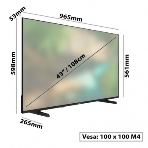 La televisión tiene un diseño elegante y moderno, con biseles delgados y un soporte de mesa resistente que se integra perfectamente en cualquier espacio de entretenimiento en el hogar. Además, cuenta con varias entradas HDMI y USB para conectar fácilmente dispositivos externos como reproductores de Blu-ray, consolas de videojuegos, dispositivos de streaming y más.